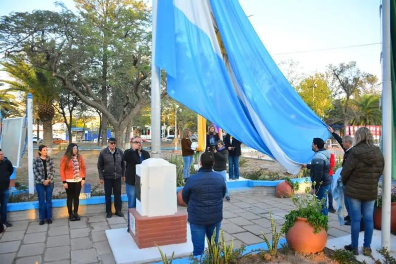 En primer lugar, los presentes, realizaron el tradicional izamiento de los pabellones oficiales, y luego hubo palabras alusivas a tan importante fecha.