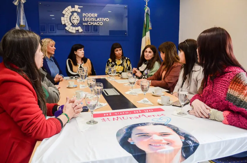 En el marco de una serie de conversatorios que se llevarán a cabo en Resistencia, General San Martín, Pampa del Indio, Las Garcitas y La Verde, bajo el lema "Por una sociedad libre de violencias y de búsqueda de justicia como un compromiso de todas y todos", la presidenta del Poder Legislativo, Elida Cuesta, junto a legisladoras de distintos bloques políticos, recibió este lunes a Verónica Camargo, exponente del movimiento nacional #NiUnaMenos.