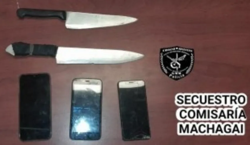 Entre sus pertenencias, los jóvenes de 17 y 18 años llevaban dos cuchillos, uno de 40 y otro de 35 centímetros, la riñonera robada y dos celulares. Ante esto, ambos hombres fueron trasladados hasta la comisaría local y notificados por "Supuestas Lesiones en Ocasión de Robo".