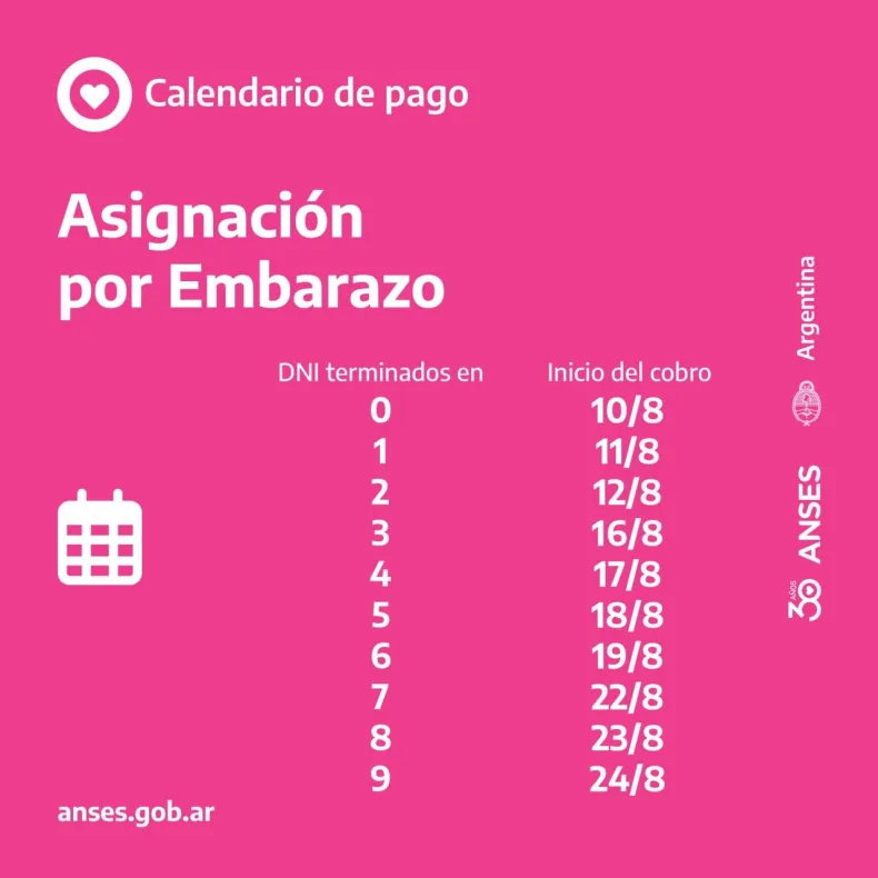 La Administración Nacional de la Seguridad Social (ANSES) informó que hoy, miércoles 10 de agosto, comienzan los pagos de la Asignación por Embarazo y de las becas Progresar para jóvenes de 16 a 24 años.