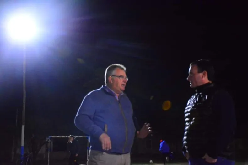 El Intendente Pio Sander, junto al Secretario de Gobierno Ismael Pablo Barnes, el Subsecretario de Deportes Roberto Scheffer, vecinos y vecinas dejaron habilitada la nueva iluminación.