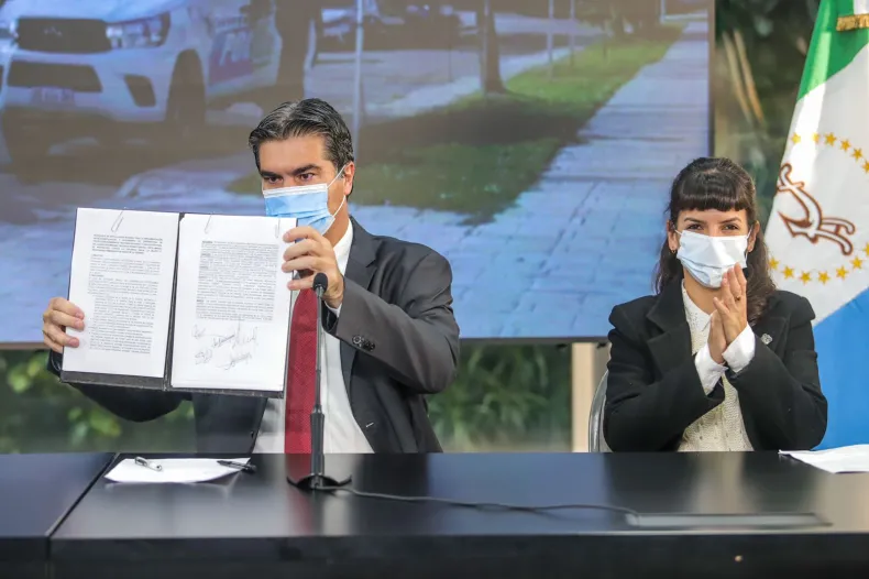 En la ocasión, se rubricó además un convenio de cooperación y asistencia técnica entre el Ministerio de Seguridad y Justicia y el Poder Judicial para la implementación, entrega y seguimiento de dispositivos de protección, como los botones de pánico de base analógica y la aplicación "Botón de pánico digital". "Este convenio apunta a hacer del Chaco una provincia con liderazgo respecto al uso de herramientas tecnológicas de vanguardia, en el marco de una firme política para erradicar la violencia hacia las mujeres e identidades femeninas por razones de género", precisó el gobernador.