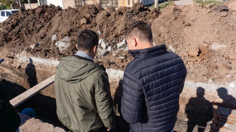 Este miércoles, el intendente Bruno Cipolini junto al secretario de Servicios Públicos, Pablo Álvarez y el subsecretario José Martín, visitaron la obra de ampliación y revestimiento de la alcantarilla ubicada entre calle 1 y 48 del barrio Tiro Federal.