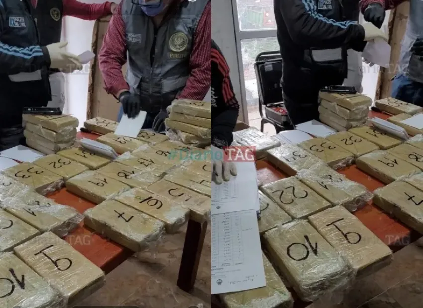 Hasta el lugar mencionado, se acercaron los agentes de la Comisaría Segunda y comenzaron con la requisa de la casa, hasta que se dirigieron al sector de la cocina y constataron que en el cielorraso se encontraban 16 objetos de forma rectangular, que dieron un peso total de 44 kilos con 747 gramos de cocaína.