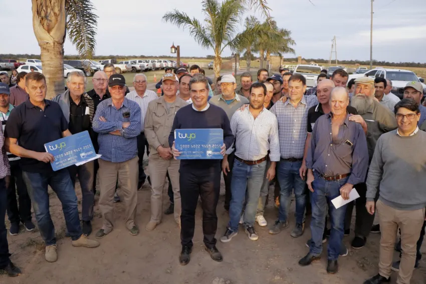 La entrega, que contó con la presencia del presidente del Nuevo Banco del Chaco (NBCh), Federico Muñoz Femenía, el intendente de Corzuela, Rafael Carrara, y dueño del campo donde se concretó la entrega de beneficios, Drago Kapor, constituye "un novedoso instrumento de financiamiento y crédito para los productores chaqueños".