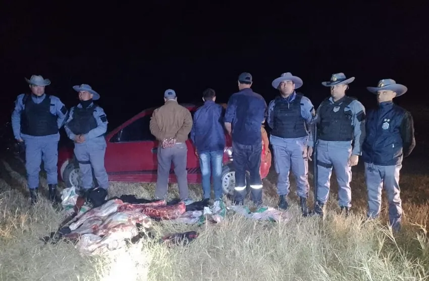 En el marco de un patrullaje que se estaba realizando en un camino vecinal en Legua 19, cerca de Quitilipi, agentes se percataron de la presencia de una auto marca Suzuki, estacionado sobre un alambrado perimetral de un campo. Los efectivos se acercaron y observaron a tres personas agazapadas entre los matorrales y junto a ellos gran cantidad de carne vacuna. Además, en el interior del auto una media res. Las tres personas portaban rifles calibre 22.