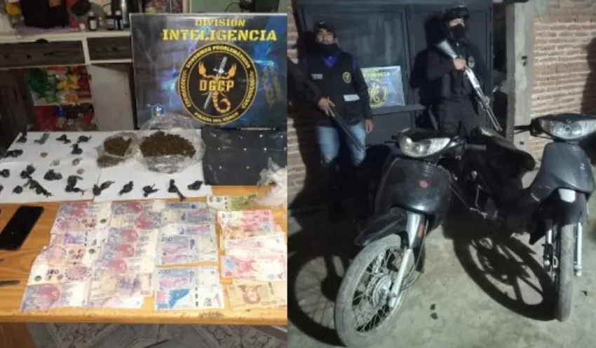 El resultado del operativo fue de 302 gramos de cogollos de marihuana, 1,7 gramos de cocaína, 3500 pesos y dos motos que tenían pedido de secuestro por robo denunciados en junio y julio de este año.