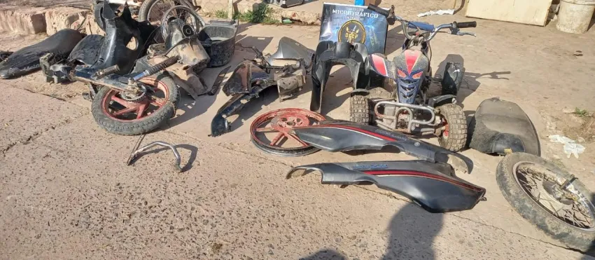 El despliegue policial comenzó a las 14.30 horas y estuvo acompañado por un ayudante fiscal. Al llegar al lugar, ubicado en el Barrio Sarmiento, los agentes ingresan al domicilio y, para el asombro de ellos, se encuentran con un desarmadero de motocicletas de diferentes cilindradas, partes de motores, llantas, repuestos usados, tanque de combustible, manubrios y un cuatriciclo marca Zanella que no poseía ni cédula ni título vehicular.