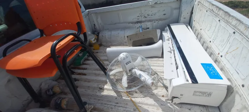 En el terreno encontraron entre bolsas y trapos la parte interna de un aire acondicionado, un ventilador de pared paletas de plástico, dos sillas de metal con base y respaldo de color naranja, un kit de sanitario de pileta y pedestal (brazo) de porcelana.
