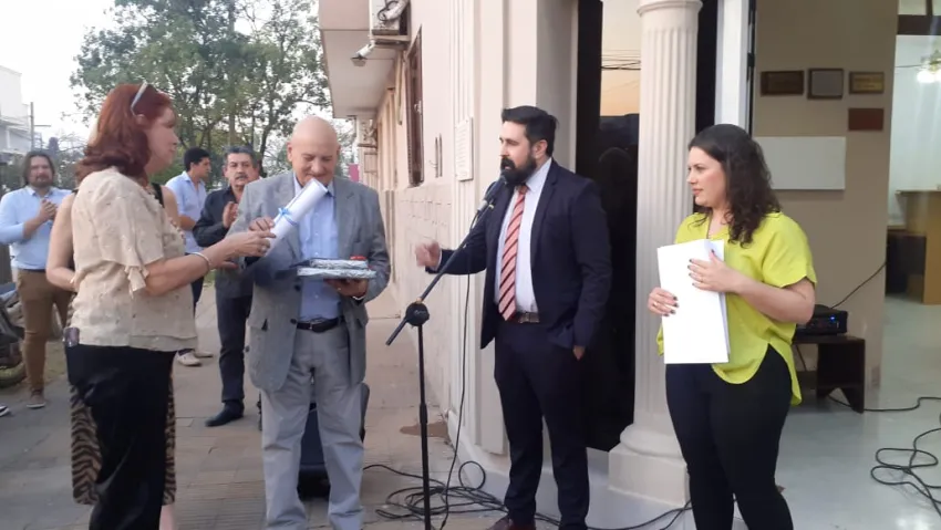 El presidente del Colegio de Abogados de Sáenz Peña Leandro Arrudi, Pibernus, Cipolini, Luis y Hernán Méreles tuvieron a su cargo los discursos, donde recordaron a su fundador Artemio y también se mencionó la trayectoria.