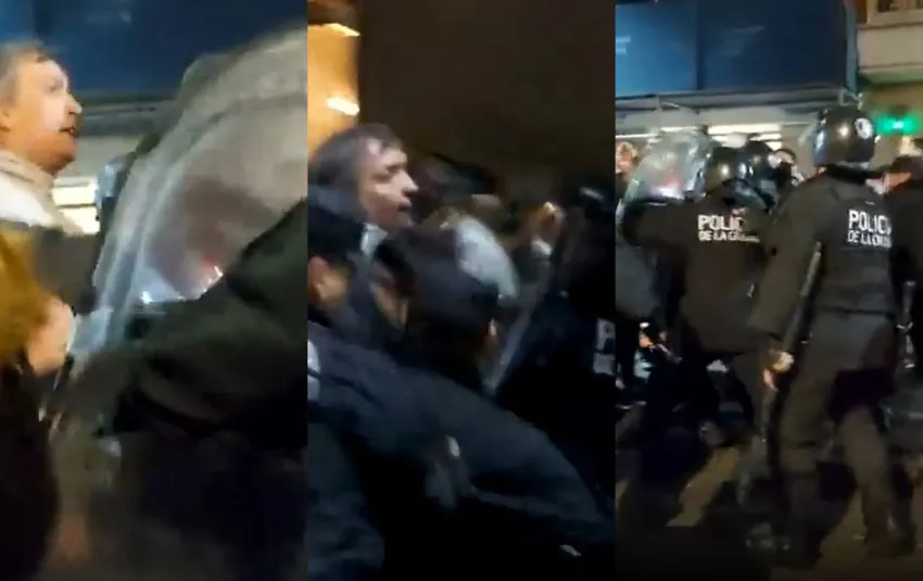 En ese momento, los efectivos avanzan con los escudos y pegan patadas para que el grupo del legislador retroceda. Y se escucha a la persona que filma insultar al Kirchner: "¿Querés pasar, Máximo, la concha de tu madre? Puto. La concha de tu madre vas a pasar". Finalmente, el legislador avanza y sigue su camino.
