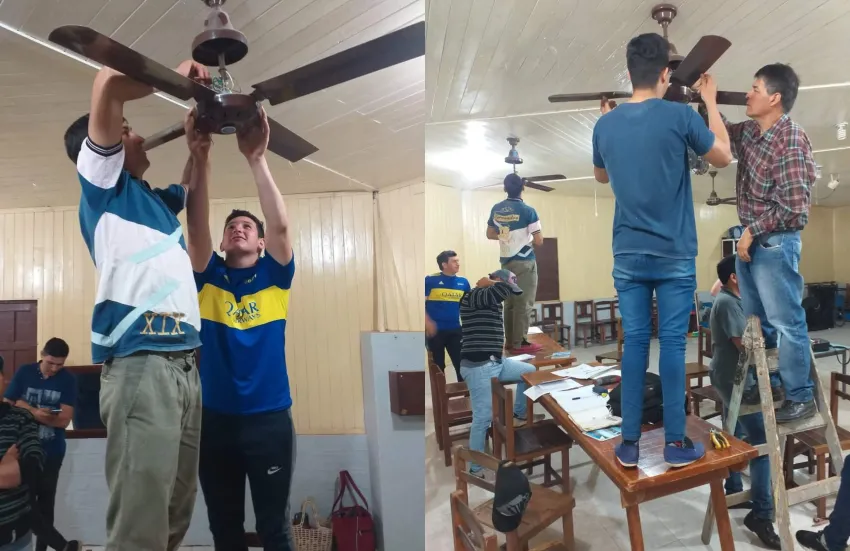 En esta oportunidad los estudiantes y futuros auxiliares en instalaciones eléctricas realizaron trabajos de mantenimiento e instalación de ventiladores y conexiones eléctricas en la fundación Gotas de Amor.