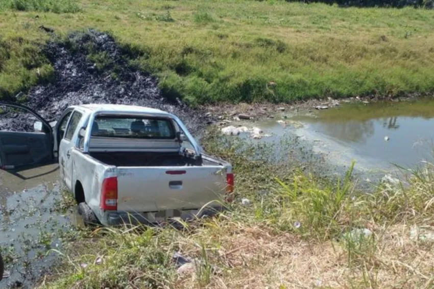 El conductor de una camioneta Toyota Hilux de 82 años perdió el control de su rodado y terminó con su rodado en un canal.