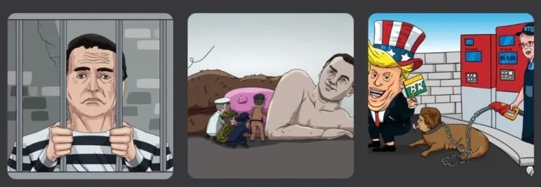 Además, navegando por la página se puede encontrar una serie de textos con críticas hacia Bolsonaro y una galería de viñetas en las que el presidente brasileño aparece besándose con diferentes personalidades, como el presidente de Rusia, Vladímir Putin, o el expresidente de Estados Unidos Donald Trump.