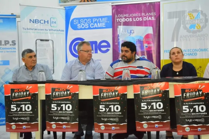 El intendente Pio Sander, junto a los presidentes de las cámaras de Comercio de Juan José Castelli, Miraflores y Villa Río Bermejito y autoridades del Banco del Chaco realizaron el lanzamiento del #BlackFriday 3, que tendrá lugar este viernes, sábado y domingo, para impulsar las ventas en nuestra localidad y en toda la región.