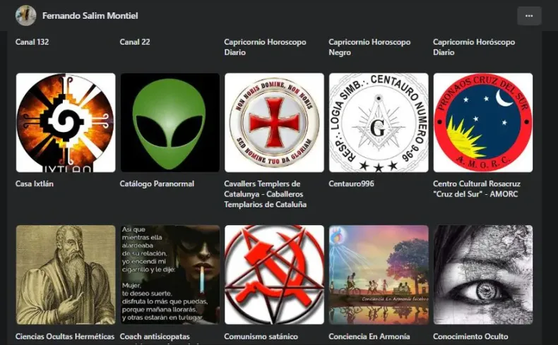 Según medios nacionales, Montiel seguía a cuentas como "Comunismo satánico", "ciencias ocultas herméticas" y "coach antisicopatas", y sitios que se presentan como "logias" u "órdenes masónicas".