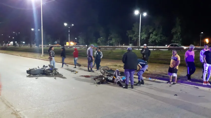 El accidente se produjo este jueves por la noche en Colectora Norte entre calle 8 y 10 del barrio Lamadrid, por razones que la Policía trata de establecer dos motocicletas colisionaron y sus conductores mayores de edad sufrieron lesiones. Ambos conductores debieron ser trasladados al Hospital 4 de Junio.