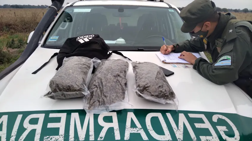 Segundos después, se toparon con un hombre que al ser revisado llevaba tres bolsas de nylon conteniendo una sustancia vegetal. Luego, los agentes de Gendarmería procedieron a realizar el pesaje y arrojó 3 kilos.