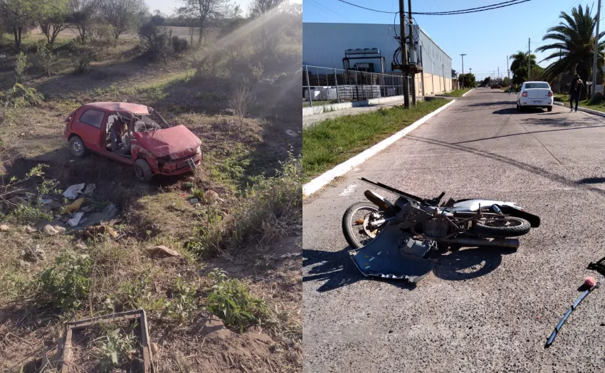 Fin de semana accidentado en Villa Ángela: un auto cayó en un canal y una moto fue chocada por un vehículo