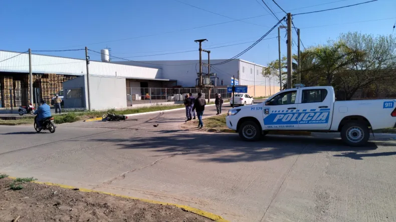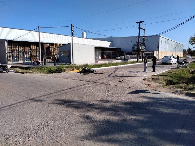 Por otro lado, ese mismo día se produjo otro accidente de tránsito en la intersección de las calles Uruguay y Santa María de Oro, pero esta vez los protagonistas fueron una motocicleta y un auto marca Renault Sandero.