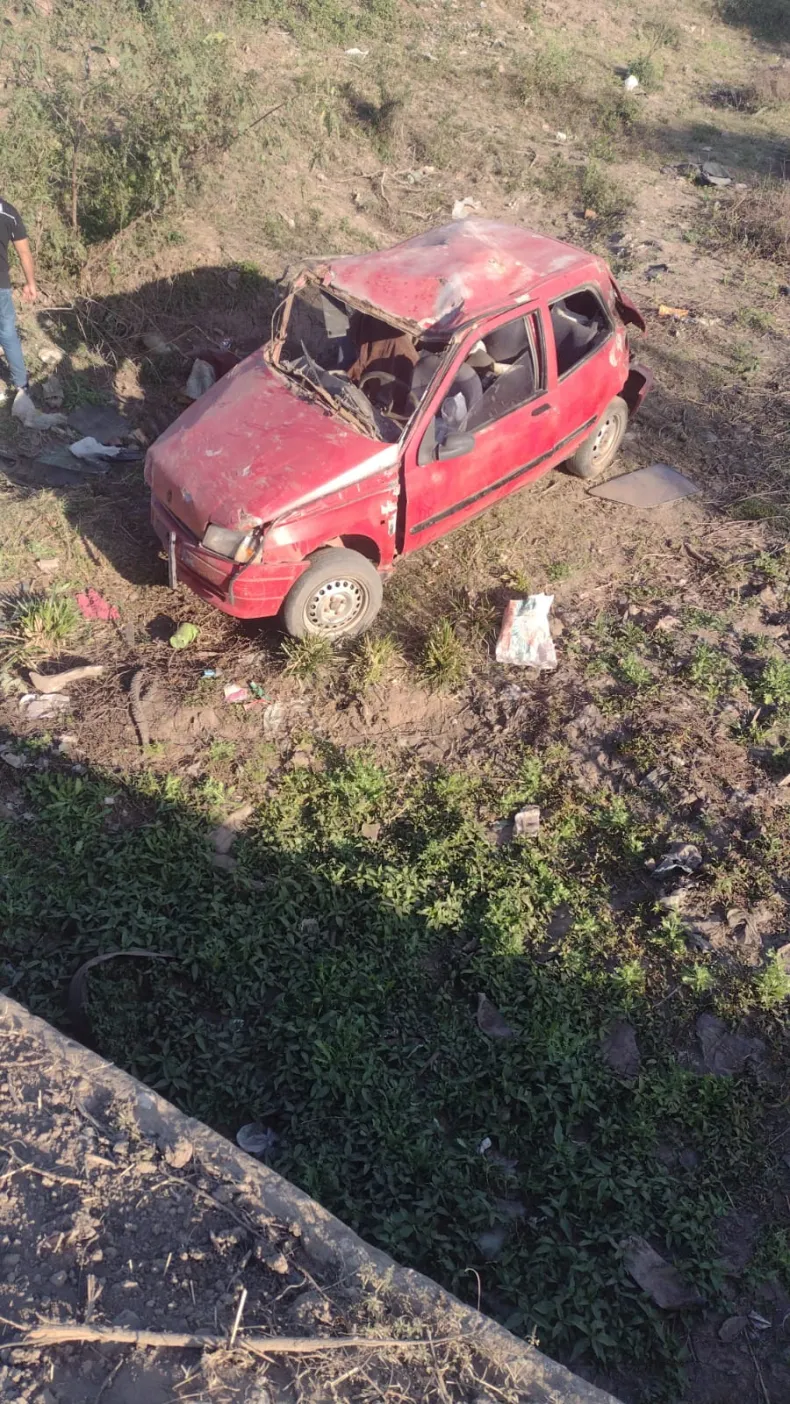 El primer siniestro sucedió el día sábado 3 de septiembre en horas de la tarde cuando el conductor de un Renault Clío, color rojo que se dirigía por un camino vecinal perdió el control y terminó cayendo a un canal sin agua.