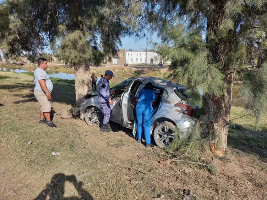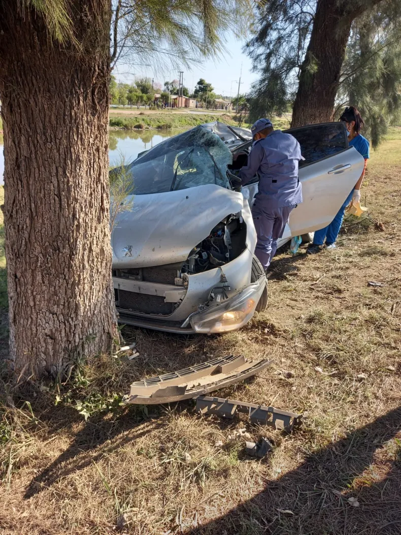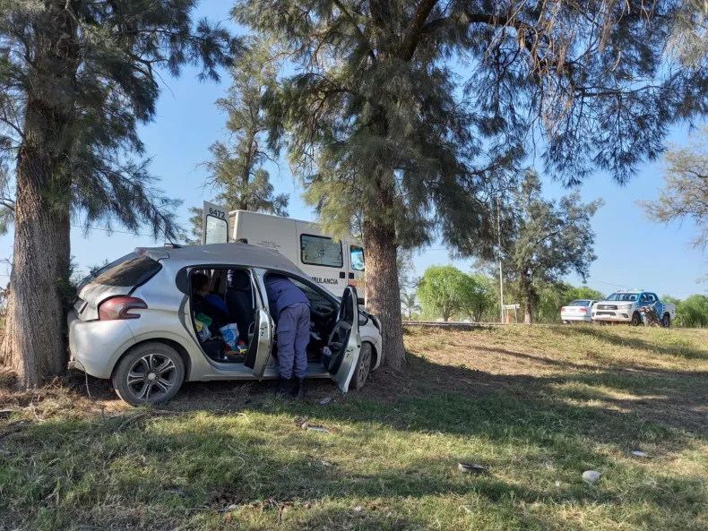 Rápidamente un móvil policial se hizo presente en el lugar y constató que un Peugeot 208 conducido por una mujer de 43 años había perdido el control impactando fuertemente contra unos árboles.
