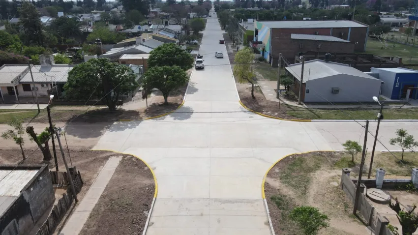 Los trabajos de pavimentación se ejecutan con un paquete estructural: compuesto de una carpeta de rodamiento de hormigón Tipo H-30 con un ancho total de 8,34 m y un espesor de 16 cm. Con respecto a los desagües, se prevé la ejecución de un conducto de caños de H°A° de 600 mm de diámetro paralelo a la calle Misiones entres RN N° 89 y calle Caseros, como así también la construcción de cinco cámaras de inspección para enlace y limpieza. Sobre calle Salta se prevé la colocación de caños PEAD de 600mm de diámetro para el cruce de calles.