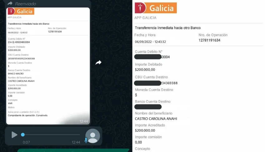 "De más está decir que la transferencia nunca llegó. Ví que muchos aquí contaron que intentaron estafarlos con exactamente lo mismo. Tengan cuidado, avisen a las personas mayores que por ahí no entienden tanto y estén atentos a estas cosas", concluyó Castro.