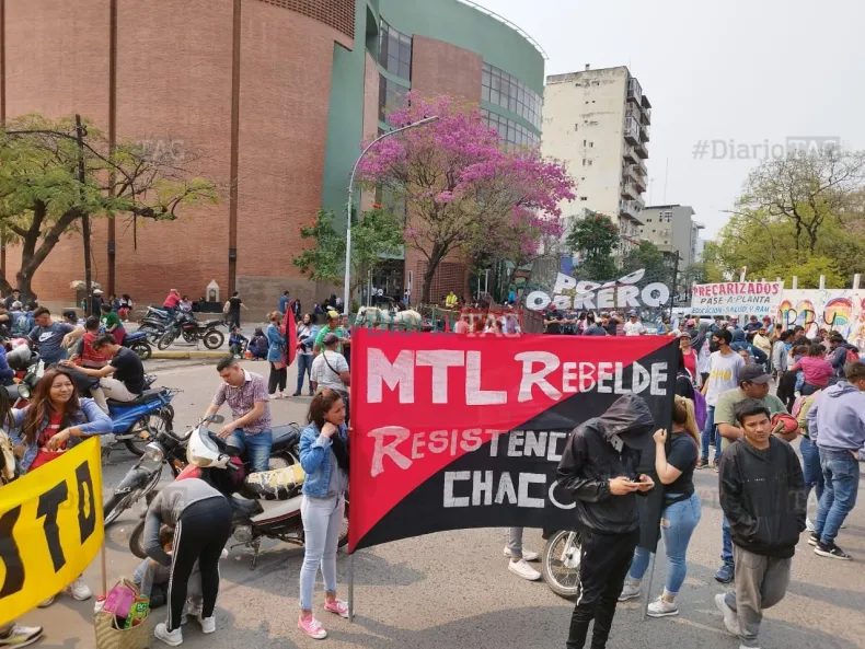 En el marco de una nueva jornada de lucha nacional, diversos movimientos sociales se movilizaron hacia el centro de Resistencia, cortando diferentes arterias alrededor de la Plaza 25 de Mayo, para realizar un reclamo multitudinario contra un "nuevo ajuste encabezado por Sergio Massa e impulsado por el Gobierno nacional".