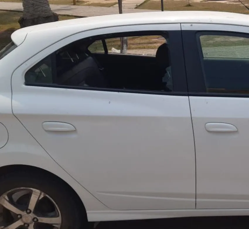 Quiso esquivar a manifestantes, lo atacaron con gomeras y le rompieron el auto