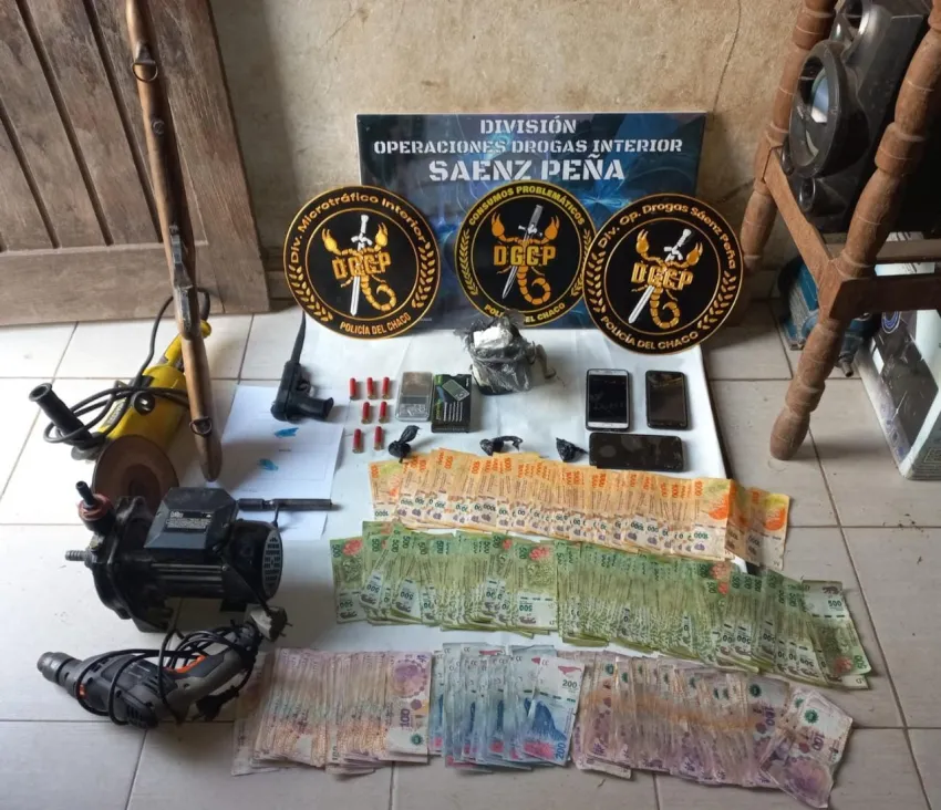 En ambos domicilios, ubicados en las 40 viviendas, incautaron más de 700 gramos de Cocaína, casi 250.000 pesos en efectivo, balanzas digitales y armas de fuego.