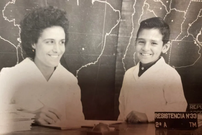En la foto sonriente con la señorita maestra de 2do grado turno Mañana. Gracias maestras de la Escuela N°33, Señora de Benítez, Raquel Diaz Setuvi, señora de Egea, señora de Roig, señorita Rosciani, señora de Pérez, señora de Speroni, señora de Pérez, señora de Zossi, señora de Arias, la Directora Lidia Polich de Calvo y tantas que nos dieron lecciones de amor y tiza mezclado con valores y respeto a la Patria.