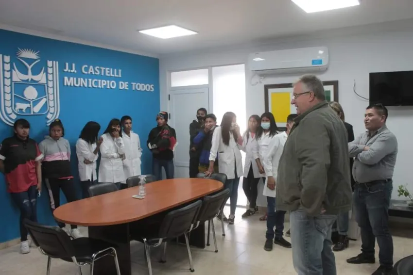 Un grupo de alumnos de 6º y 7º grado de la Escuela EEP N°1061 del paraje Víboras Blancas y alumnos de 7º grado de la Escuela de Olla Quebrada, fueron recibidos por el intendente de Castelli, Pio Sander, en el despacho municipal para compartir un encuentro.