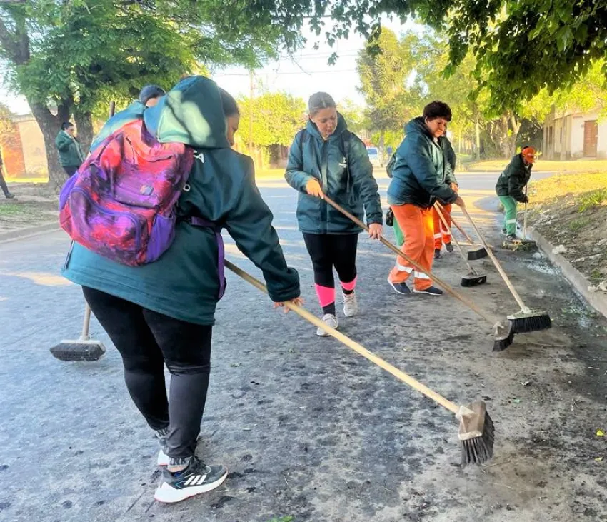 En un sector comprendido entre las avenidas 25 de Mayo y Rivadavia, y las calles Ameri y Brignoles Norte los operarios ejecutaron barrido manual en arterias urbanas y veredas, además de desmalezado y recolección de residuos dispersos en la vía pública.