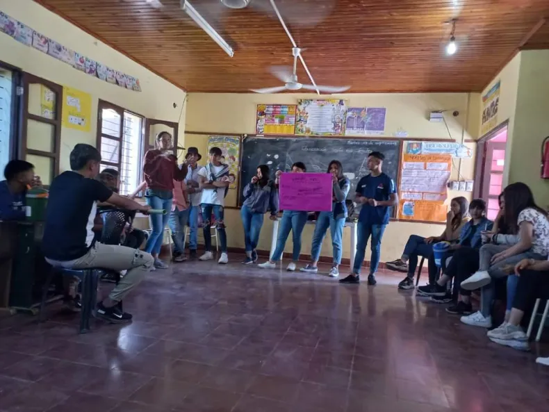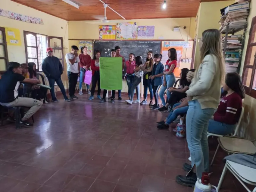 Desde la Subsecretaría de Igualdad y Género de Castelli se llevan adelante talleres en diferentes instituciones educativas. En esta oportunidad, el equipo compuesto por asesores del Plan ENIA y a la acompañante territorial ESI visitaron la E.E.S. N°166 "Paraje Campo Bedogni", para llevar adelante un encuentro de Educación Sexual Integral con alumnos de la institución.