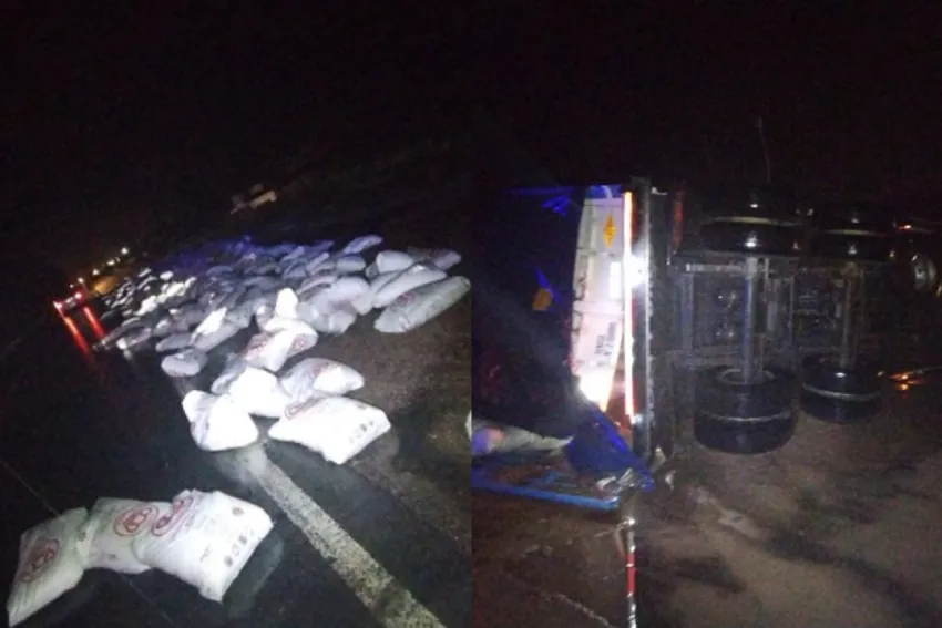 Un camión que transportaba azúcar volcó sobre la Ruta Nacional 89: no hubo heridos