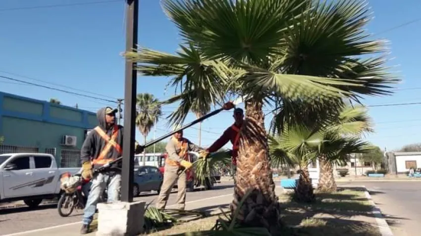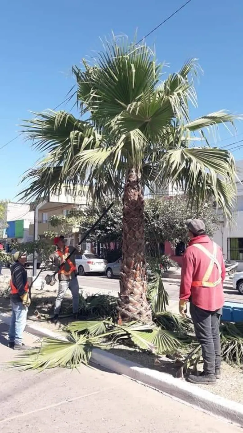 Esta mañana, los trabajadores municipales del equipo de poda de la Secretaría de Ambiente iniciaron la poda de las de palmeras en los bulevares de Avenida San Martín de la localidad de Juan José Castelli.