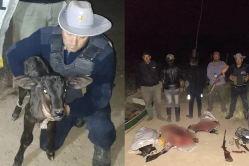 El primer procedimiento se dio anoche alrededor de las 22 horas, los efectivos de la Sección Rural de La Leonesa fueron comisionados al Paraje Mongay. Allí un hombre, informó que personas ingresaron a su campo, faenaron un animal y luego se dieron a la fuga.