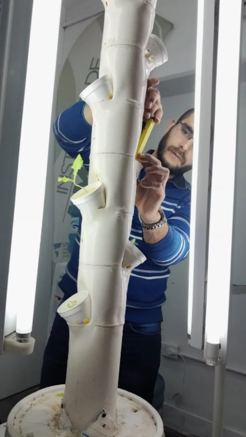 Estudiantes de UNCAUS implementaron un sistema de Cultivo Aeropónico