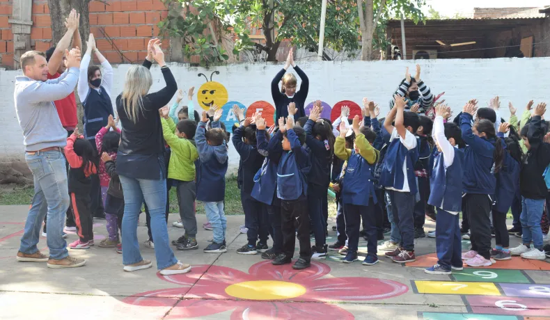 El programa "Rayuela Saludable" que el municipio de Resistencia lleva adelante, llegó al Jardín de Infantes N° 123 "Arq. Carlos Alabe" de Villa Rio Negro, donde a través de la iniciativa, los alumnos pudieron aprender y jugar con esta propuesta que promueve el aprendizaje de hábitos saludables y el cuidado del ambiente.