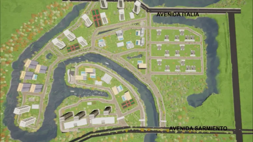El proyecto inmobiliario "Costa Norte Eco Distrito" se desarrollaría en un predio ubicado entre las avenidas Italia y Sarmiento y consta de una superficie total de 39 hectáreas, 22 de ellas de superficies verdes, 8 de espejos de agua, 8 módulos de áreas comerciales y servicios, 6 módulos gastronómicos y 1.800 metros de costanera.