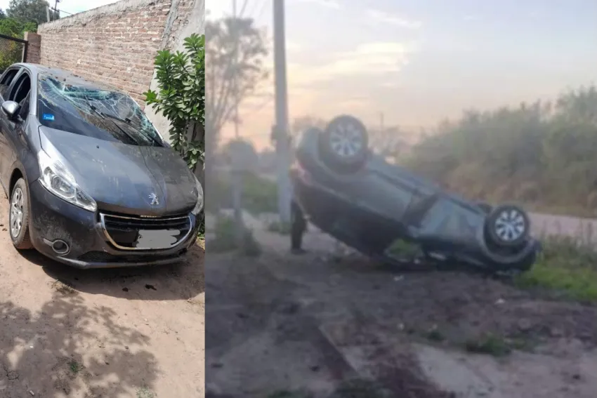 Por razones que aún se desconocen, la joven perdió el control del auto en el que circulaba con otra mujer, de 35 años. El vehículo marca Peugeot modelo 308 se subió a la vereda, chocó contra un cerco perimetral y volcó, quedando las cuatro ruedas hacia arriba.