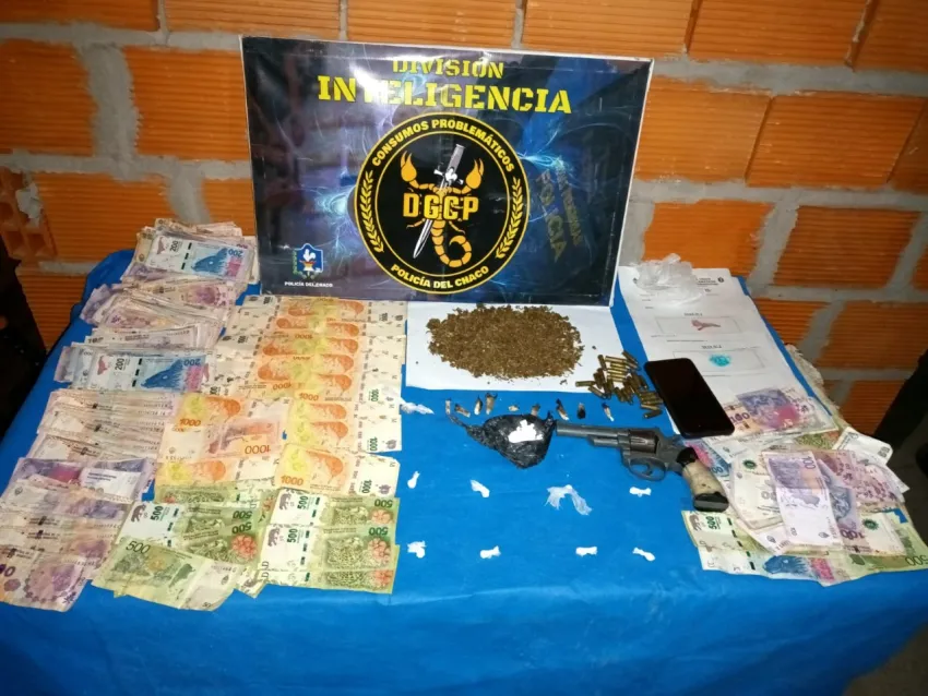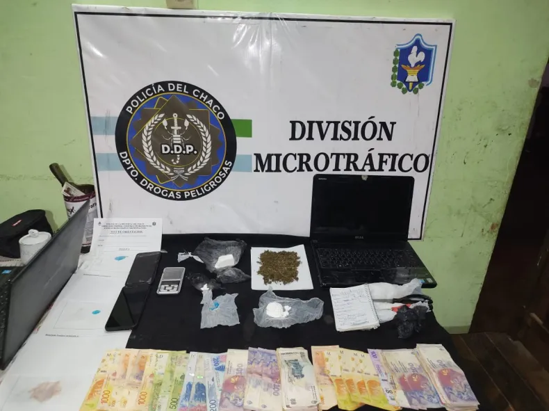 En el interior de la casa se hallaron algunos envoltorios tipo piedras con una "sustancia blanca", que dio un resultado positivo para cocaína con un peso de 95,6 gramos. A su vez, se encontró un envoltorio con marihuana con un peso de 26,8 gramos, una balanza, dos celulares, dos tijeras, un cuaderno de anotaciones y la suma de $ 17.070.