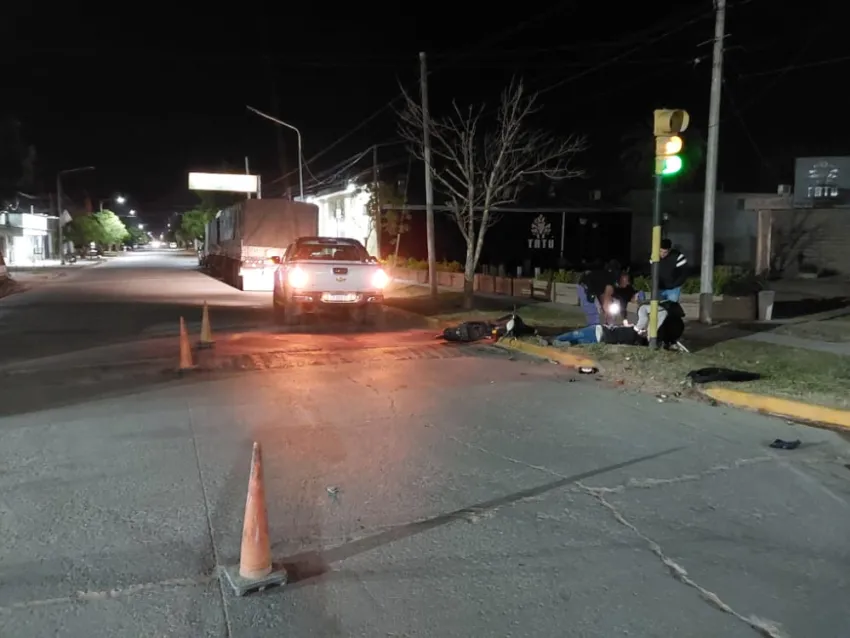 En la madrugada de este lunes se produjo un accidente de tránsito en la ciudad de Charata donde una camioneta y una moto terminaron colisionando.