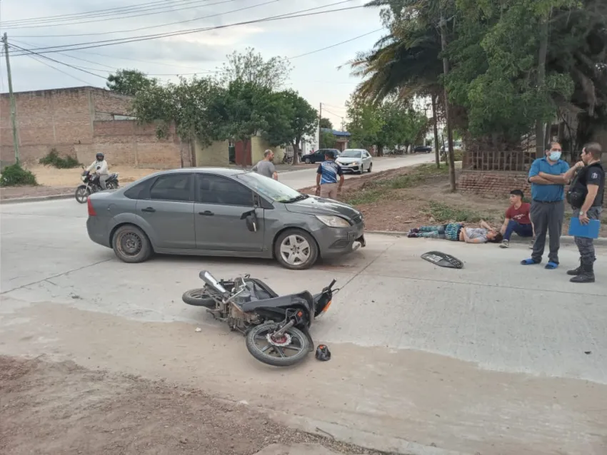 A las 11:20 de la mañana, en la intersección de las calles Belgrano y San Luis de la localidad de Villa Ángela, se produjo un siniestro vial entre un auto y una moto, que dejó lesionadas a quienes se transportaban en el vehículo de menor porte. Rápidamente fueron trasladados al centro de salud más cercano para mejor atención médica.