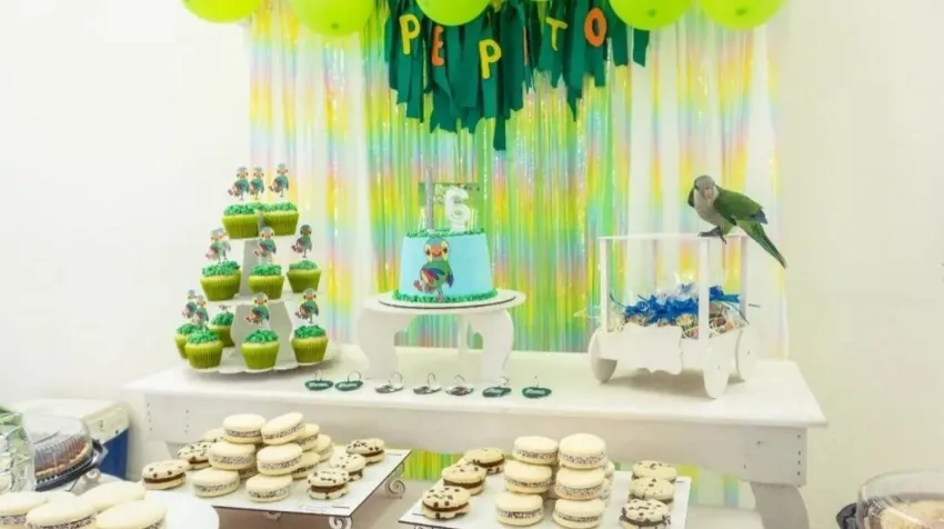 Insólito: una pareja le festejó con mesa dulce y más de 60 invitados el cumpleaños a su loro