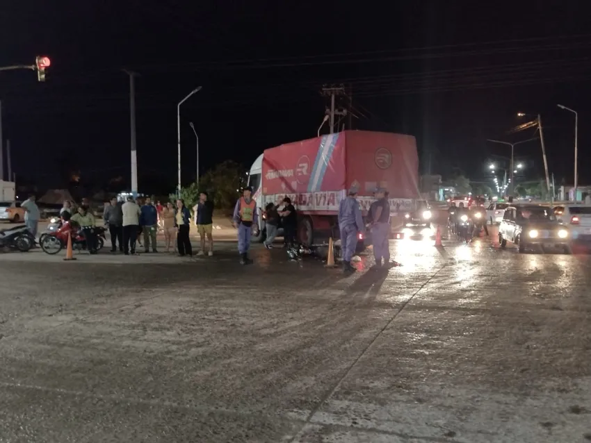 Anoche cerca de las 20 se producto un accidente de tránsito en la intersección de las avenidas Soberanía y Alberdi, donde una motocicleta en la que circulaban dos personas colisionaron con un camión de gran porte marca Iveco.