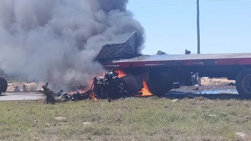 Este mediodía se produjo un choque en el kilómetro 885 de la Ruta 12, cerca de la localidad de Mantilla en Corrientes. De frente, colisionaron 2 camiones y uno se prendió fuego.