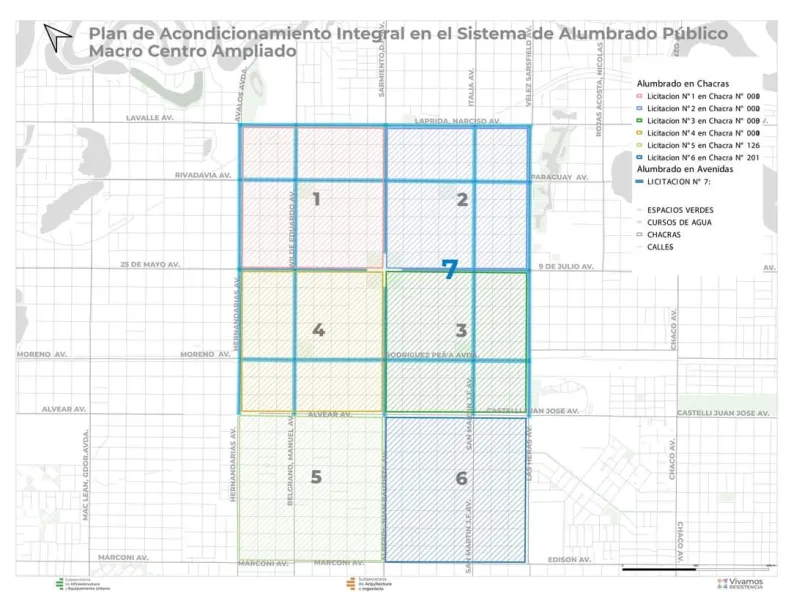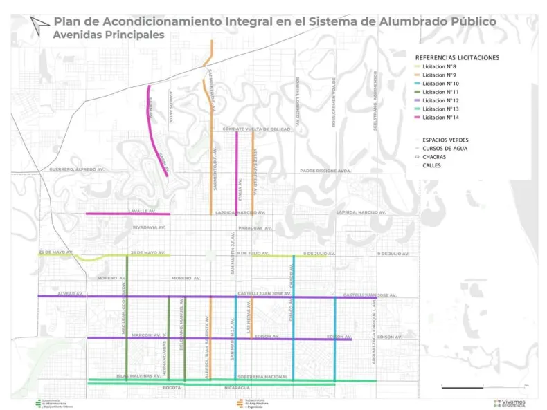 El Municipio de Resistencia desarrolló un Plan de Acondicionamiento Integral de Alumbrado Público, y en ese contexto se presentó el llamado a licitación para 25 obras que se ejecutarán en más de 300 barrios con el objetivo de renovar el sistema de iluminación. Con recursos propios, esta planificación tiene un presupuesto aproximado de 600 millones de pesos de inversión.