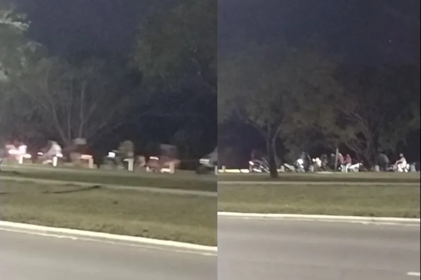Según se puede ver en las imágenes que se viralizaron este lunes, una impresionante cantidad de motos se encontraba participando de una peligrosa "picada", cuando uno de ellos perdió el control del vehículo, originando el accidente.